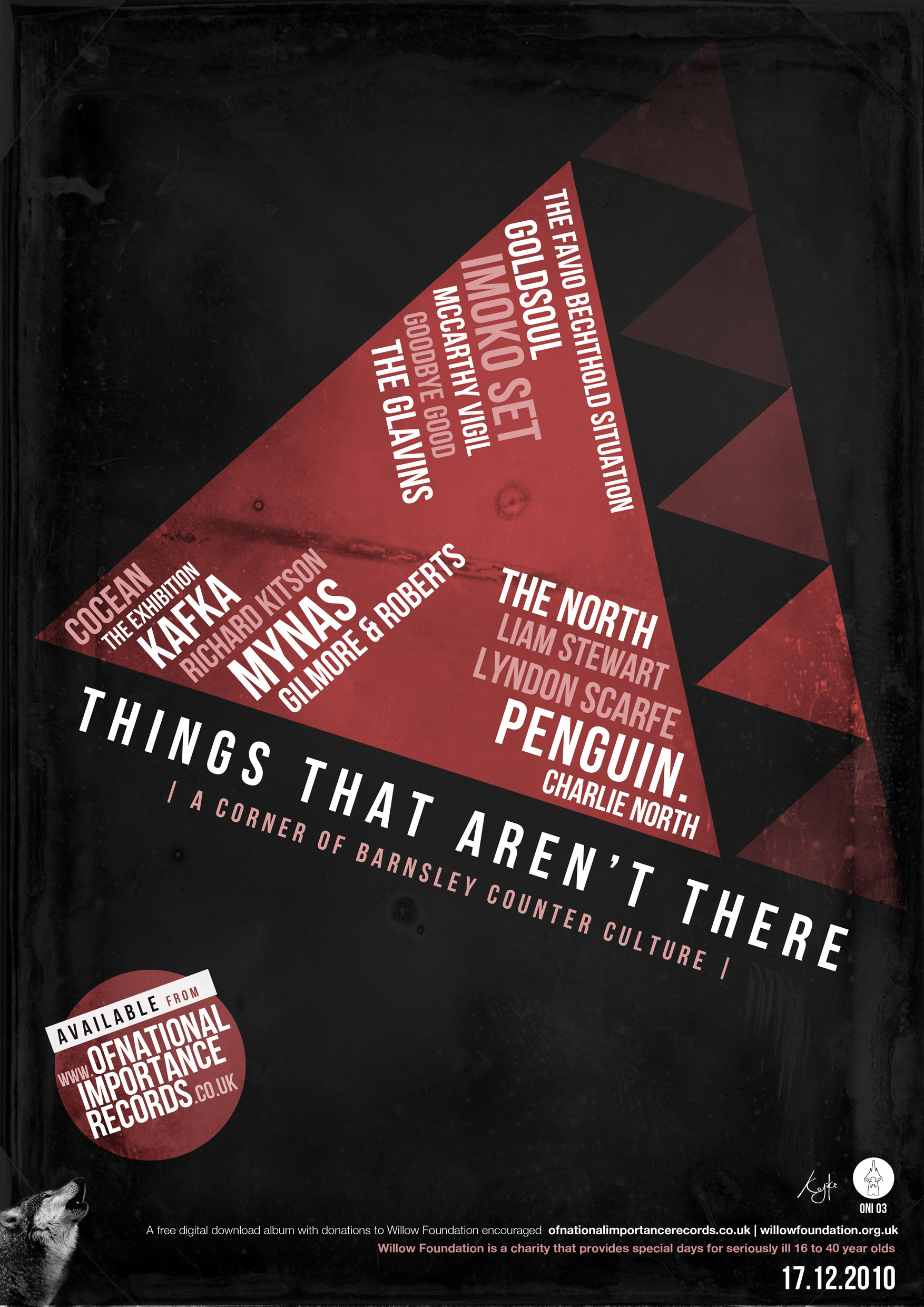 A compilation of Barnsley-centric sounds available from the 17th of December 2010. Yours for free or in exchange for a small donation to the Willow Foundation (a very worthwhile charity that organises special days for seriously ill young people); whatever you might see fit or can afford. Tracklisting, some added giveaways for budding philanthropists and possibly more will be revealed in the lead up to the release through this website and over on the Facebook event page.