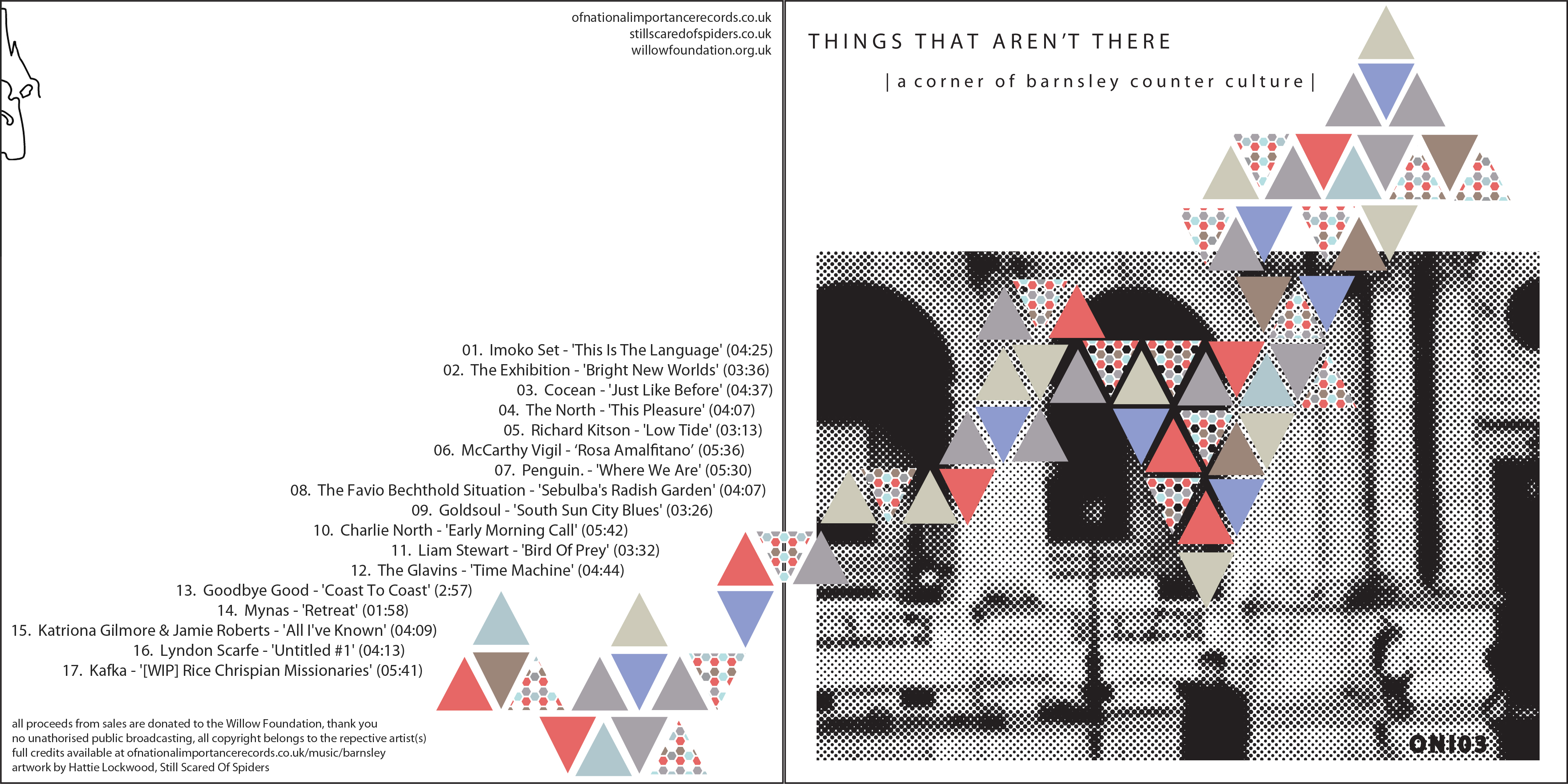 ‘Things That Aren’t There’ is a 17-track digital compilation album of Barnsley-centric musicians, available for free or in exchange for a small donation to the Willow Foundation – a charity that organises special days for seriously ill 16 to 40 year-olds. Please give what you can afford or might see fit. Click the banner below to download and donate. Thank You.